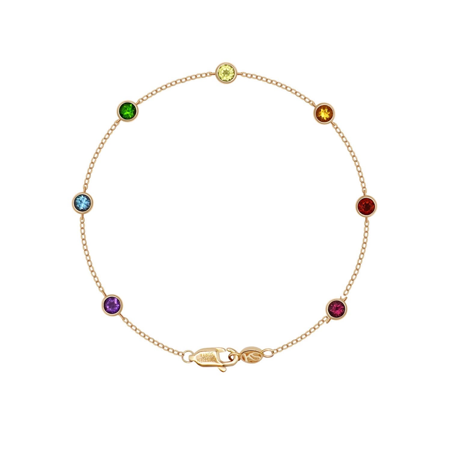 Celebrate the colors of the rainbow with seven gemstones, each symbolizing beauty, energy, and balance. This vibrant collection infuses elegance with the natural spectrum’s uplifting power.